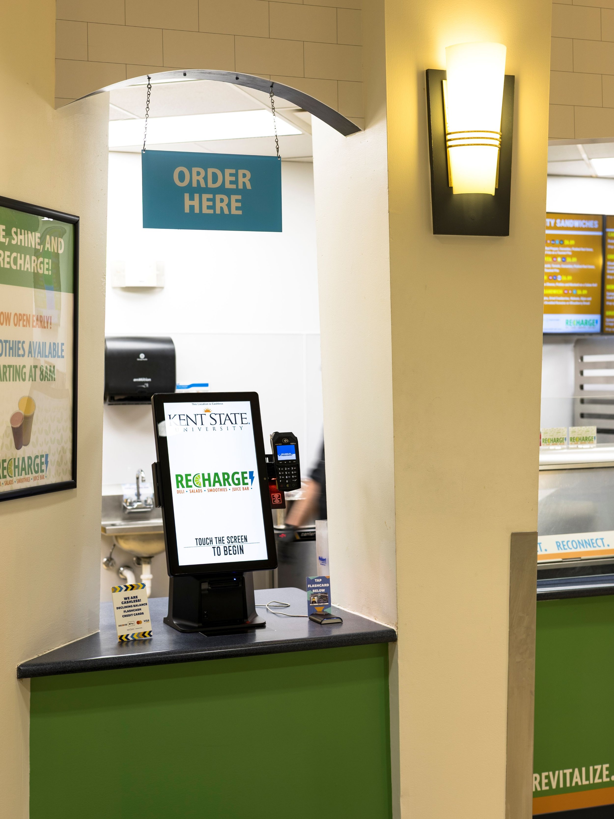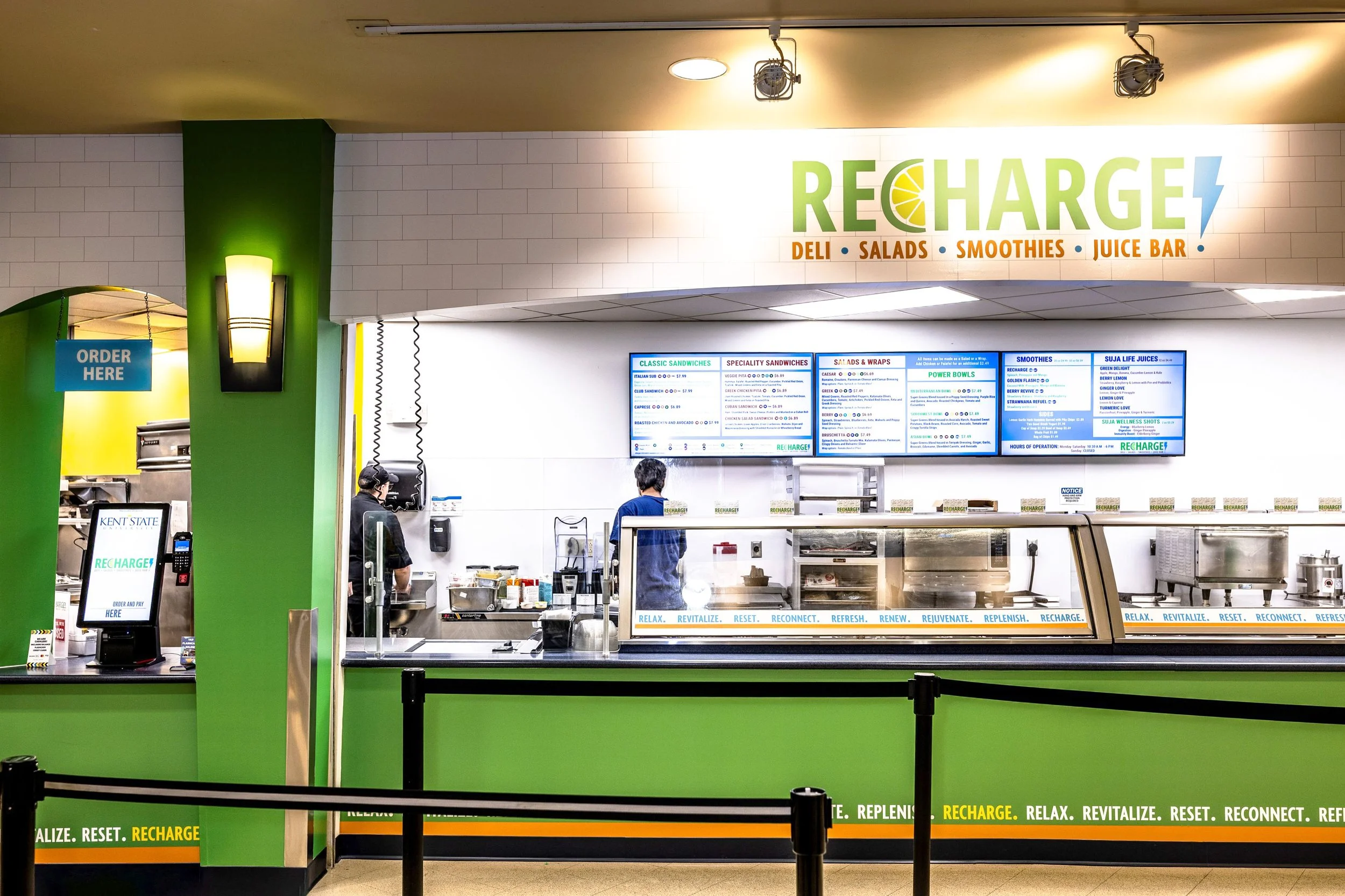 As a graphic designer for Kent State University’s Division of Student Life, I have had a plethora of opportunities to create unique and engaging work. One of my favorite projects was Recharge!, a new on-campus dining location.